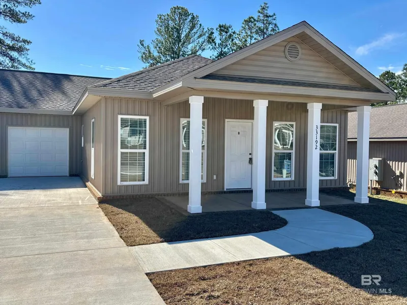 Brand new 3 bedroom 2 bath ONE STORY, duplex in the Spanish Fort area. Upgrades such as custom paint, large walk-in shower, Granite kitchen countertops, low maintenance stained concrete floors, and stainless steel appliances are just some of the quality construction that is evident in this home. The primary bathroom has double vanities, granite countertops, large easy entry shower, and a walk-in closet that offers privacy and convenience to the homeowner. Ceiling fans and blinds are included and installed in all bedrooms. The home has an attached single car garage convenient for parking and storage. The yard boasts a large open area with a covered front and back porch. A HUGE BENEFIT TO THIS UNIT IS THAT Lawn care, Termite bond, and Insurance on the building and roof is included in the very low $228 monthly dues. This property is located in a growing area with great shopping, and excell...