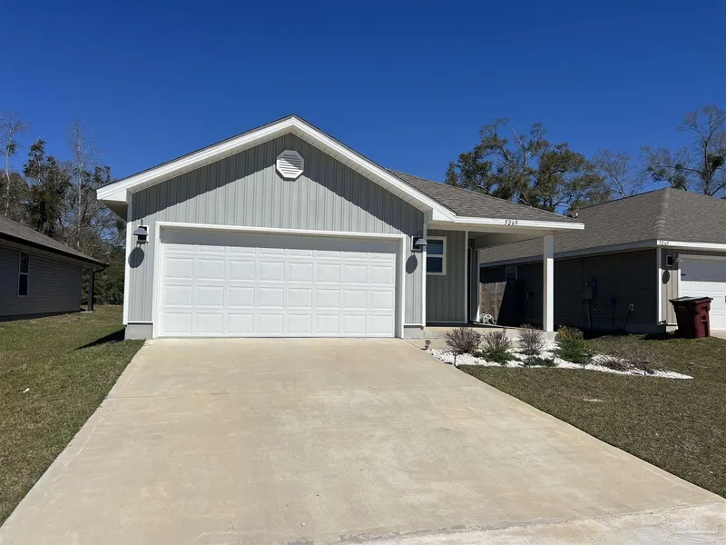 Welcome to The Woodlands! This modern 3-bedroom, 2-bath home features an inviting open-concept kitchen, complete with stainless steel appliances, a spacious island, and ample counter space for cooking and entertaining. The generous master suite offers a double vanity sinks, a large shower, and a walk-in closet for added convenience. Enjoy the fully fenced backyard with a covered patio, an ideal space for relaxation, outdoor gatherings, or letting your pets roam freely. Located just minutes from NAS Whiting Field and close to Pace’s restaurants and the stunning Pensacola beaches, this home perfectly blends comfort and convenience. Don’t miss out on making 5269 Peach Dr your new home