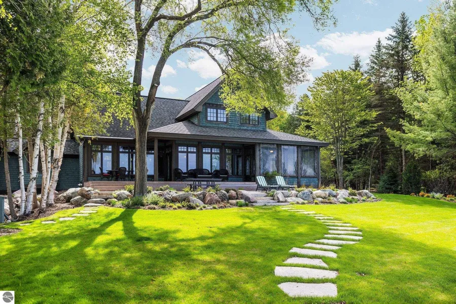 Welcome to the Gold Coast of Torch Lake! This stunning, newly renovated and updated home sits on 3.58 acres and 232 feet of Torch Lake. Enjoy sitting at the waters edge from the new Brazilian decking and slate stone patio, just feet from the turquoise waters of the worlds 3rd most beautiful lake. Meticulously designed and appointed, this 4 bedroom, 3 bath, 3845 square foot home has open and airy living space designed to maximize the stunning views. The focal point of the living room is the impressive fieldstone fireplace, beautiful log posts (many milled from the property) custom railings, wood floors and an open floor plan that gives this home a timeless feel. The newly remodeled kitchen features a Wolf Subzero Oven and Steam Oven, Cove Dishwasher, new countertops and so much more. Enjoy your morning coffee or the spectacular sunsets from the 3-season room, just steps from the wat...