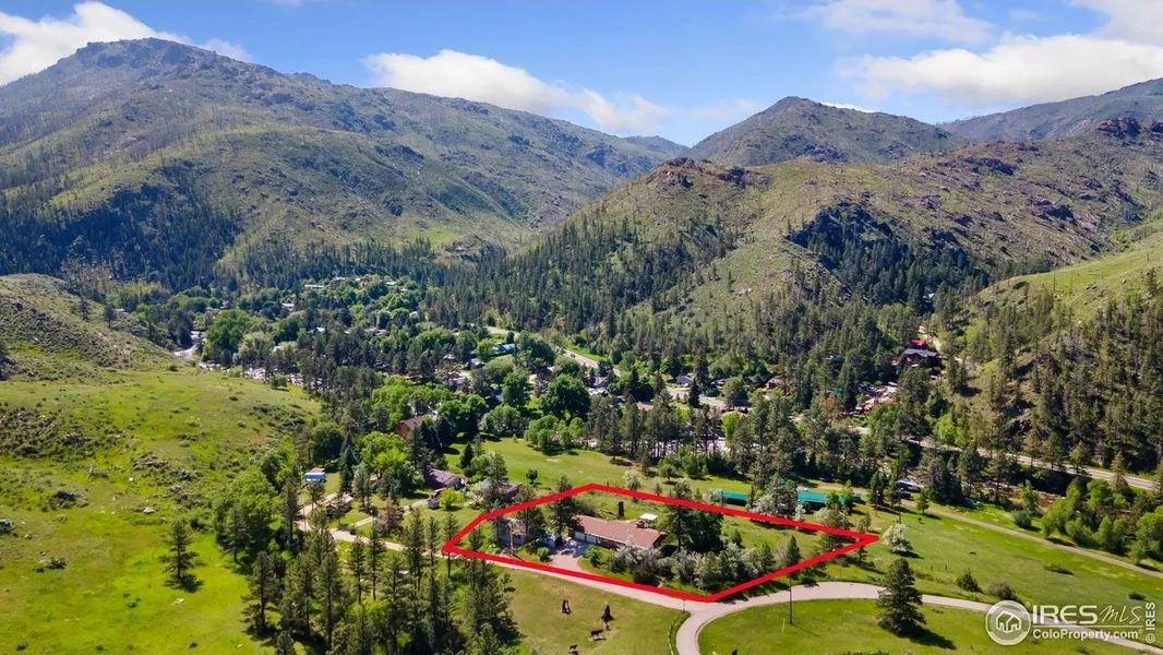 Breathe in the mountain air and take in the views in this serene 1.5-acre property that borders a national forest and overlooks the Cache la Poudre River! Located at the very start of the Hewlett Gulch trailhead, the setting incorporates a seasonal creek and scenic hiking right outside the front door. A single-level design keeps everyday living convenient inside this mountain retreat. The main living area boasts beamed ceilings and large windows that pull in natural light and frame incredible views of the surrounding hills and forest. At the heart is a floor-to-ceiling, multi-sided petrified wood fireplace centerpiece that anchors the living and dining areas. The kitchen offers a perfect blend of style and function with wraparound granite countertops, modern appliances, and plenty of storage. The primary suite features a spacious walk-in closet and its own ensuite bath and outdoor access, giving you a restful retreat after enjoying the outdoors. Outside, a raised gazebo offers 360-degree views of Colorado's stunning natural landscape. Another unique feature is the raised grassy terrace-the original foundation of a historic home-complete with a stone chimney, the perfect spot for stargazing or sunset dinners. A 712sqft guest cabin gives visitors their own cozy space, great for company, multi-generational family, or even as a creative studio. The oversized 2-car attached garage comes with a workshop area, and an additional storage shed for all your outdoor gear. The house also comes with a 6kg propane backup generator that is wired with a separate circuit for the generator. Additionally, the property features a 5-zone in-ground sprinkler system with 3 heads per zone, ensuring the landscaping is maintained effortlessly. Owned solar panels help power your lifestyle with energy savings and off-grid potential. And best of all, you're just a comfortable 30 minutes away from Fort Collins. No HOA! The square footage includes the 1,504 sq ft home plus the 712sqft guest house.
