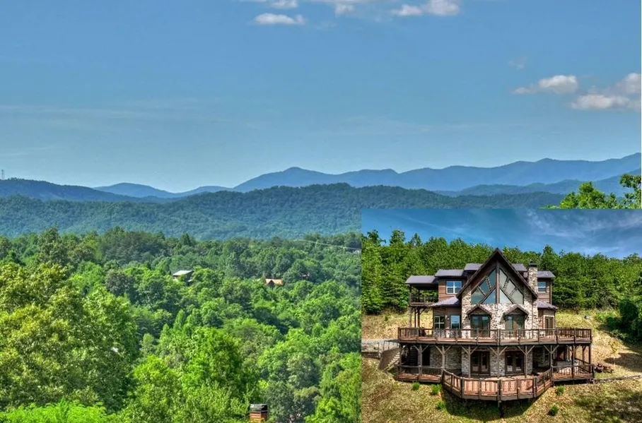 Breathtaking long range mountain views await you. Experience the charm of rustic luxury in this tastefully furnished and well-appointed cabin. Step into the impressive foyer, which offers ample storage. The interior boasts exceptional finishes and attention to detail. A stunning stone wall of windows elegantly captures the gorgeous views from the open-concept living, dining, and kitchen spaces, which also features a wine bar. Equipped with high-end appliances, stylish countertops, modern cabinets and a handy pot filler faucet, the kitchen is a chef's dream. The upper-level primary suite includes a cozy sitting room, a private balcony, and a convenient stackable washer/dryer. On the terrace level, you'll find another full kitchen, a spacious recreation area, and a contemporary media room perfect for movie nights with family and friends. Expansive decks provide an outdoor kitchen and plenty of space—both covered and uncovered—for entertaining guests. This home is practically new; though construction began in 2005, it was completed in 2023, when the certificate of occupancy was issued. Enjoy deeded creek access and a community pavilion that present endless opportunities for outdoor adventures. It is conveniently located near the delights of mountain living in North Carolina and North Georgia, including shopping, dining, trout fishing, boating, vineyards, hiking, tubing, and even Murphy's very own casino.