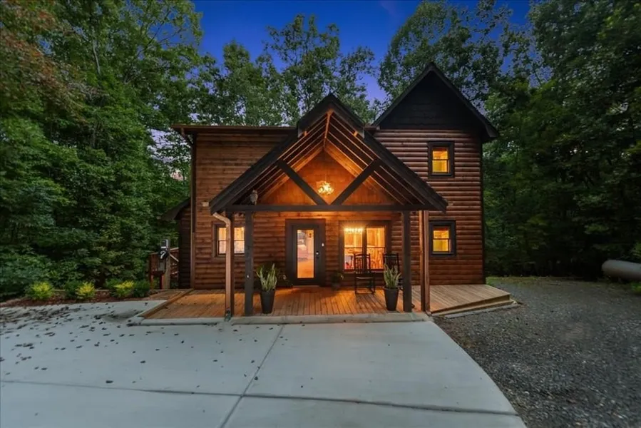 ^^ Adirondak Inspired Creek Front Chalet ^^ Sizzling with style this 4BR, 3BA lodge is known as “Rusty Creek Cabin” & located in a magical picture perfect setting w/ beautiful creek frontage nestled among 0.64 wooded acres w/ mature hardwoods & native flora galore. Spacious open floor plan w/ 1BR/1BA on the main level, 1BR/1BA on the terrace level w/ finished Recreation Rm/Den & 2BR/1BA upstairs including large master suite + open loft flex space that offers additional sleeping or flexibility of being a home office, study, etc. From the moment you step foot inside you'll be impressed with the sense of upgraded finishes throughout from the massive cathedral ceilings of the entry front porch w/ exposed beam rafters to the custom kitchen cabinetry w/ butcher block countertops including the waterfall edge butcherblock countertop on kitchen bar w/ modern style upper shelves & tile backsplash, stainless steel appliances, upgraded lighting throughout including deer antler chandelier in the GR, Adirondak inspired “mountain laurel” handrails & pickets on the staircase & more. 2 Rock gas log FP's including one in the main level GR & one in the terrace level Rec Rm/Den. Large covered porches spans entire length of home offering two levels offering the best in outdoor living including a outdoor dining deck on the main & a private hot tub deck on the terrace w/ access to your own private nature trail leading to the creek front outdoor firepit. Master suite features custom walk in “carwash” shower featuring amazing emerald green tile w/ industrial metal + glass shower panels & live edge rustic vanity w/ concrete sinks providing a really striking vibe w/ the blend of modern & warm rustic design element finishes. This property has been a successful STR/investment property & can be purchased turnkey fully furnished