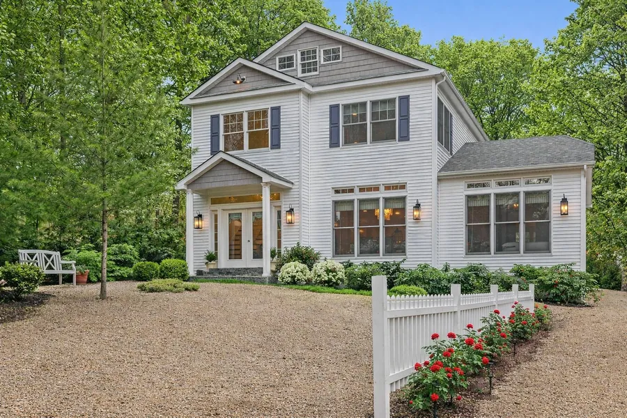 Stunning new construction tucked along the coveted fringe of East Hampton Village, offering refined living in one of the East End's most desirable locations. Bathed in natural light, this modern residence delivers thoughtful, convenient amenities while maintaining effortless proximity to pristine ocean beaches and the vibrant villages of East Hampton, Amagansett, and Sag Harbor. Designed for both everyday living and entertaining, the home features designer finishes and custom, one-of-a-kind statement lighting throughout, along with a highly functional layout that flows seamlessly outdoors. French doors open to a spacious patio with plenty of space for entertaining, creating a tranquil setting ideal for al fresco dining and gatherings. The beautifully appointed chef's kitchen connects effortlessly to the living room and adjacent powder room, highlighted by hand-painted bespoke accent deta...