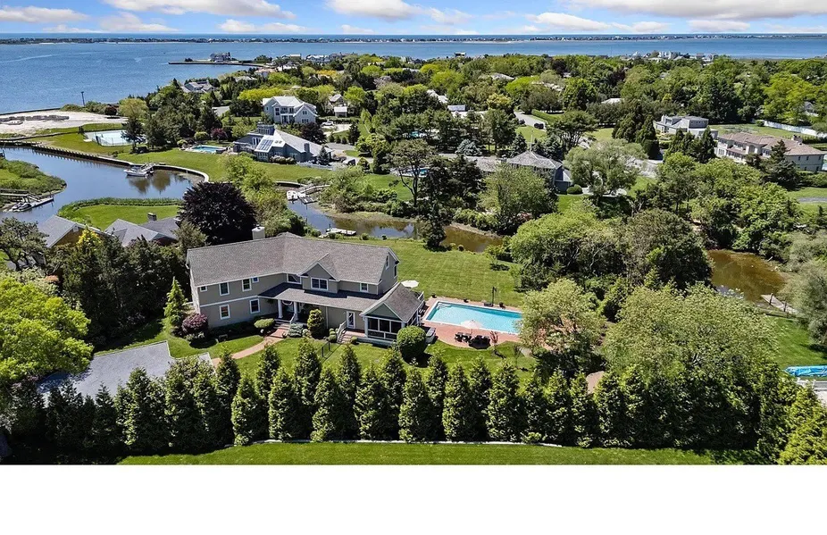 Remsenburg Estate nestled Majestically and Situated on 1.15 acres of waterfront property, this custom post modern home offers multiple living areas with a formal living/dining room with woodburning fireplace, spacious den with gas fireplace, and additional family room off of the kitchen. The New open kitchen features a large center island with seating, stainless appliances including a Viking range, dining area, wet bar with wine cooler and wine rack, and multiple sliders throughout the first floor all leading to the deck and backyard to the creek. The second floor master suite offers a walk-in closet, gas fireplace, waterside balcony, and master bathroom with tub, separate shower, and slider to an additional waterside balcony. Joining the master on the second floor is an additional space with full bath, 2 additional bedrooms, full bath, office/sitting area, and laundry room. Outdoors enjoy the heated refurbished gunite pool, outdoor fireplace, covered porch with seating and your own dock.