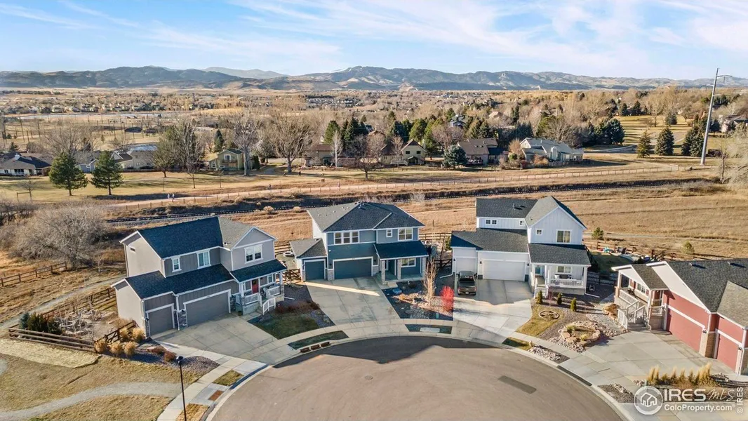 Set on an oversized lot, this beautifully maintained two-story home in South Fort Collins is perfectly positioned at the end of a quiet cul-de-sac and backs directly to a greenbelt and the adjacent Power Trail, offering an open, natural buffer that adds privacy and effortless access to miles of scenic paths. Inside, an open main level keeps everything connected, with the kitchen, dining, and living areas flowing seamlessly together to create a bright, comfortable space for both relaxing and entertaining. Whip up your favorite meals in the kitchen that features stainless steel appliances, granite countertops, a center island, and a pantry, providing plenty of prep space and storage for all your cooking needs. A flexible bonus room by the entrance offers a versatile space that can function as an office or den, depending on your needs. Four bedrooms and a generous loft on the upper level provide plenty of space for everyone to spread out. The primary suite stands out with its ensuite bathroom and a large walk-in closet. Outdoor living takes center stage with views that never get old. The fenced backyard features a covered patio overlooking the Rocky Mountains and nearby Southridge Golf Course, paired with low-maintenance xeriscape landscaping and a customized dog run. The 3-car garage provides plenty of room for vehicles, gear, and storage, keeping everything organized and accessible. Enjoy easy access to local amenities, with a future park currently under construction at the beginning of the street, adding even more value and outdoor enjoyment just steps away.