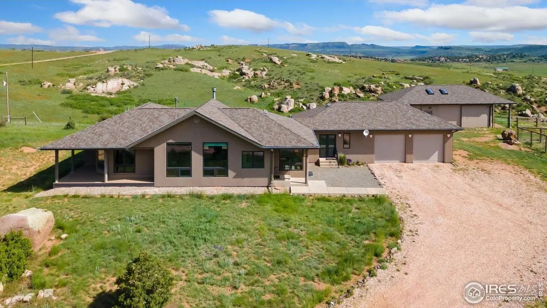 Surrounded by breathtaking 360 degree views and natures beauty, this well constructed ranch style home provides a foothills oasis with an easy daily commute to Fort Collins. Located a short distance from 287, just past the Owl Canyon turnout, this 40 acres features a varied landscape with open pasture for livestock, two small canyons with active springs, and rock outcroppings. Watch the sun and moon rise over the foothill vistas and enjoy daily visits by local wildlife including deer, bald eagles & turkeys. Very close to the future Glade Reservoir with future recreational opportunities including boating & hiking. The custom home features an open kitchen, dining and living space with picturesque views for miles including city light view of the Fort Collins valley. The main floor office is tucked away from the main living spaces, ideal work from home situation. The primary suite also featu...