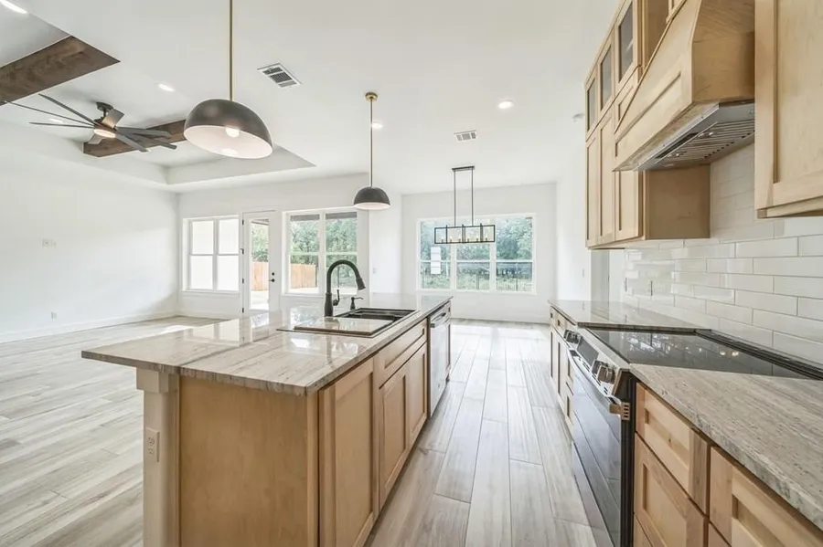 Beautiful new construction custom home on a .30 acre lot. This stunning 4-bedroom, 2.5-bath home is move-in ready and packed with upgraded features! The open floor plan showcases custom wood cabinetry, granite countertops, floor tile throughout, high ceilings, large windows for plenty of natural light. Entertainers kitchen with grand island, stainless steel appliances, pantry, dining room. The spacious primary suite offers a luxurious bath with a garden tub, walk-in shower, double vanity, and a convenient walkthrough closet leading to the laundry room. Quality construction with stone and stucco combination, 2 car finished garage, fully fenced, plumbing in place for water softener system. Enjoy peaceful evenings on the covered patio overlooking a private backyard with mature trees lining the rear property. The lot extends to the second back fence into the easement, offering extra space a...