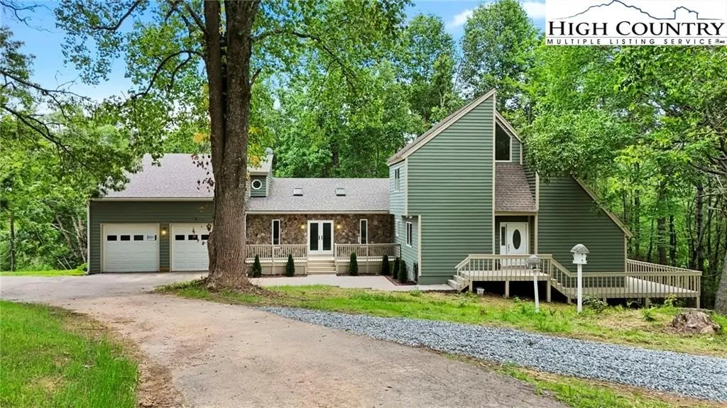 136 Day Drive– newly renovated (2025) home, just 5 minutes from Boone & in walking distance to Parkway Elementary! Offering easy access year-round, a circular driveway, a two-car attached garage, and a flat & usable yard– perfect as a getaway, investment property (short-term rentals allowed!) or full-time residence near all the High Country has to offer. The spacious home offers four bedrooms, four full baths, and two half baths, along with bonus rooms and spaces. On the walk-in level, find an open-concept living room & dining area with exposed beams, a vaulted ceiling, and access to the front patio adjacent to the kitchen with a walk-in pantry & stainless steel appliances. Past the kitchen, a den with a two-story stone fireplace offers access to the back deck and serves as a second living area. Also on the main level, find a bedroom & bathroom suite and half baths off the living room and garage area. The primary suite takes up the second level and offers a bath with a double vanity, tiled shower, and soaking tub, while another bedroom & bathroom suite exists above the garage and is accessed via stairs near the living area. Downstairs, find another bedroom & bathroom suite or studio, offering exterior access and washer & dryer hookups, and a living/bonus room. Additional features: high elevation (3,200+ feet!), high-speed internet availability, new roof (2025), new heat pumps (2025), new private well (2025), new water heater (2025), new kitchen appliances (2025).