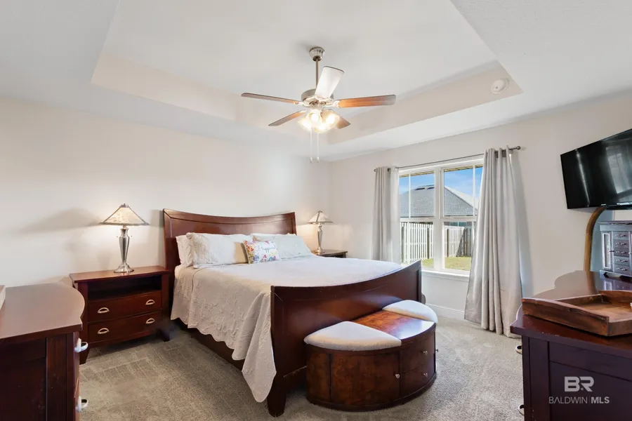 Welcome to this 4-bedroom, 2-bathroom house nestled in the Myrtlewood Subdivision of Foley. Step inside to discover the truecenterpiece of the home, The Kitchen... featuring granite countertops, Stainless Steel appliances and a pantry providing ample storage,durable Luxury Vinyl Flooring in the common areas, offering both style and practicality. The thoughtfully designed split bedroom floorplancreates an inviting and functional living space. Primary bedroom retreat features tray ceilings and an en suite bathroom with 2 spaciousclosets, a double vanity, garden tub and separate shower. Large back yard has covered patio and is fully fenced in with 2 separategated entrances, Please call me or your favorite Real Estate Agent and schedule your showing today! Buyer to verify all information during due diligence.