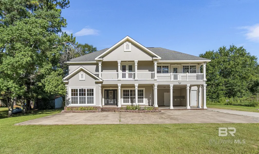 Enjoy 2 story living in this spacious 4 bedroom, 2.5 bathroom Bayou La Batre stucco house. Open concept with living room, kitchen and dining area. Kitchen features stainless appliances, gas range, island, pantry. Living room has a built-in fish tank (which easily can be removed if unwanted). Lots of natural light. Entertaining is easy with the oversized covered front porch and patio. Luxury vinyl flooring on main level. Main levels also offers a half bath and laundry room. All bedrooms are upstairs. Oversized primary bedroom has a private balcony as well as 2 vanities, jacuzzi tub, separate shower, walk-in closet. Guest bedroom has a private balcony as well. Other 2 guest bedrooms have new carpet. Hall bathroom services the 3 guest bedrooms. Deck on back of house. Large shed (20x30) with electrical. Storage room attached to covered front patio. Termite bond with Orkin. Concrete driveway ...