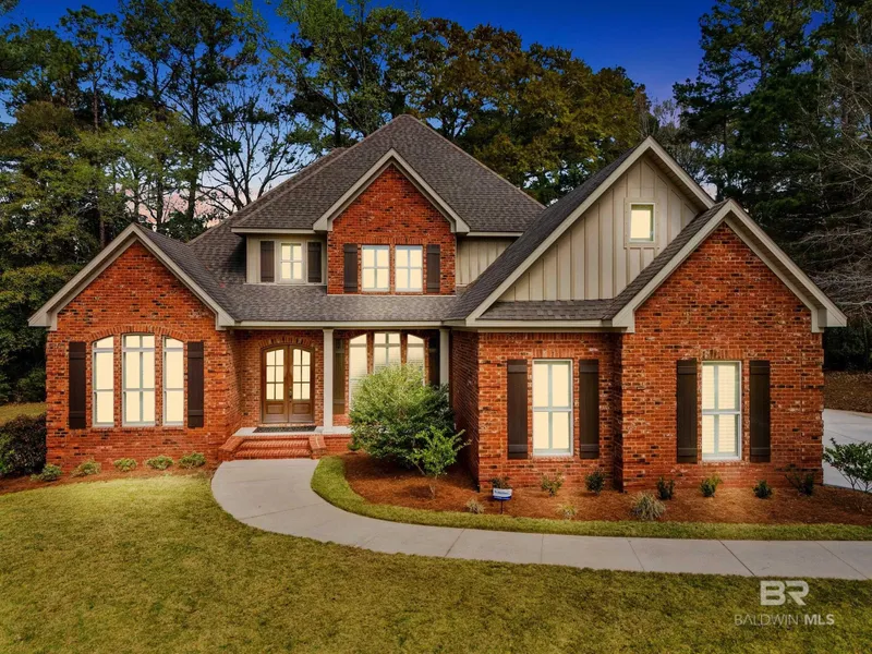 TimberCreek living at it's finest. Great news... GOLF COURSE SOLD! See latest information in the documents. This exquisite, custom-built home on a quiet cul-de-sac, features an expansive entertainment-level layout. Enjoy evenings on the back patio grilling or enjoying a dip in the hot tub with a private, wooded backyard, offering the perfect blend of luxury and seclusion. Located in the coveted TimberCreek Golf Course Community with 27 holes and clubhouse, a restaurant plus pro shop. Zoned for Rockwell/Spanish Fort School District, this home provides both comfort and convenience. Step through the grand arched French doors into a stunning entryway with soaring ceilings, elegant crown molding, and rich hardwood flooring. Thoughtfully designed with a spacious and versatile floor plan, this home boasts 5 bedrooms, 4.5 baths, a keeping room, a formal living room, an office, sunroom, a l...