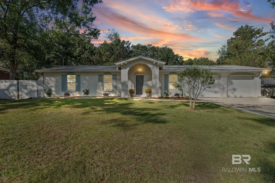 Adorable with versatility & character ** This beautifully updated 3 bedroom - 2 bath located in the heart of Spanish Fort, offers exceptional flexibility with a detached studio suite and two garages- perfect for guest space, home office or hobby retreat. NO HOA!!! ** Step inside to find a light filled living spaces featuring new luxury vinyl plank flooring, a vaulted ceiling w accent wood beam, and fresh neutral tones that enhance the home's natural warmth. The kitchen blends modern updates with charm- painted cabinetry, quartz countertops, SS appliances, tile flooring & b'fast area over looking the back yard. The primary suite includes new flooring, updated lighting and fan, and refreshed bath with new fixtures, vanity, toilet & tile floors. Two add'l bedrooms share the same quality updates. Outdoor living is equally impressive: fenced backyard, oversized two-car garage oversized with sealed floors, a storage room with sink, & tile floors. Plus an additional detached metal roof garage idea for car collectors or workshop use. And there is more.. detached studio apartment offers its own deck, kitchenette area, half bath- excellent opportunity for for guest or supplement income. Features of home: tankless water heater less than 2 yrs old-Metal Roof 4 years old- New A/C Sept 24. This one is move in ready- schedule your private showing today. Buyer to verify all information during due diligence.