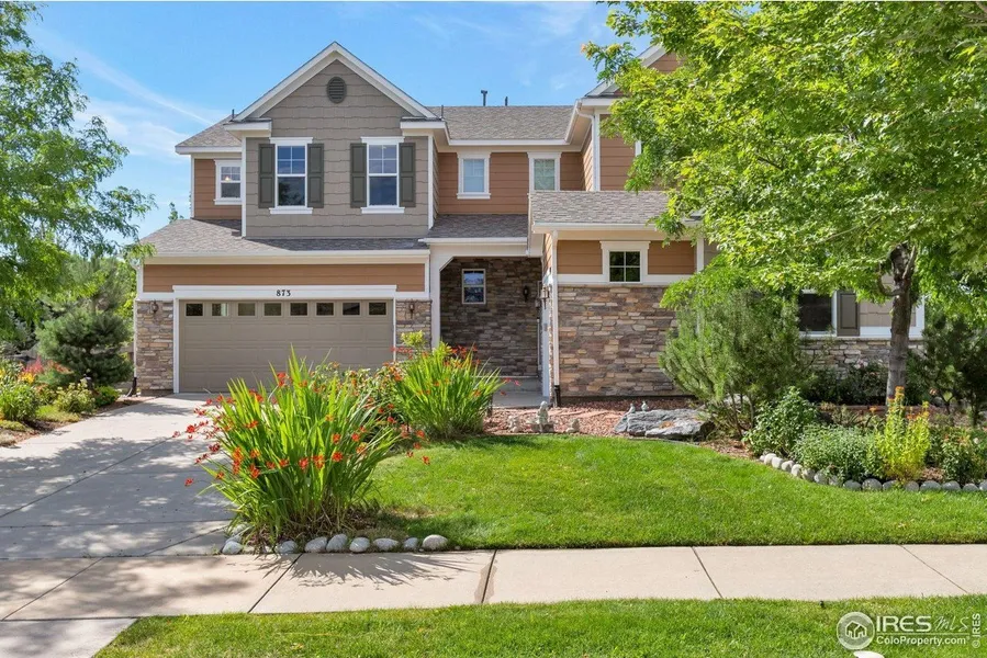 Discover elegance and comfort in this gorgeous 5-bedroom, 4.5-bathroom home, perfectly situated in Erie's desirable Cottonwood Vista. Enjoy the fresh look of new exterior paint and upgraded window coverings that invite the outdoors in. The heart of the home, an eat-in kitchen, features granite countertops, a practical island, and flows seamlessly with the home's beautiful hardwood floors and a convenient main-floor study. Ascend to a breathtaking upper-level landing, where a grand crystal chandelier, intricate wrought iron railing, and abundant natural light from oversized windows create a stunning first impression. The expansive primary bedroom offers a custom-upgraded walk-in closet and a luxurious 5-piece en-suite bathroom. The upper level also includes two additional well-sized bedrooms, a full bathroom, and a large loft that opens to the family room below, along with a spacious second-floor laundry room with matching cabinetry and a sink. The finished basement provides incredible versatility with a huge recreation room, an additional bedroom, a full bath, 9 ft ceilings and plenty of storage. Outside, a 3-car garage with a finished floor and an oversized driveway provide ample parking. The fenced and beautifully landscaped backyard, directly adjacent to a community park, offers the perfect setting for relaxation and entertaining. Don't miss the chance to make this exceptional property yours - schedule your showing now!