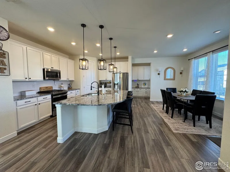 More photos Friday afternoon! Stunning Lennar built home with amazing detailed finishes throughout! Great entertaining spaces! A charming front porch welcomes you as you arrive. The main level features a spacious great room with Delfino LVP floors and a gas fireplace with gorgeous custom mantle. Culinary delight kitchen has Silver Falls granite counters, stainless steel appliances, white cabinets, large island! The dining room looks out to the yard and large covered deck. A main floor bedroom and full bath complete the main level! The upper level features a spacious primary suite with 5 piece luxury bath and walk-in closet. Two more bedrooms share a Jack & Jill bath. A spacious 5th bedroom has an en suite bath. Upper level laundry. A full unfinished lower level offers great expansion opportunities! Solar panels leased through SunNova more than covers electric bill, lease to be assumed. Smart Home technology too! Near greenbelts, three community parks, Erie shops and restaurants. Boulder Valley Schools! Showings start Friday mid-afternoon.
