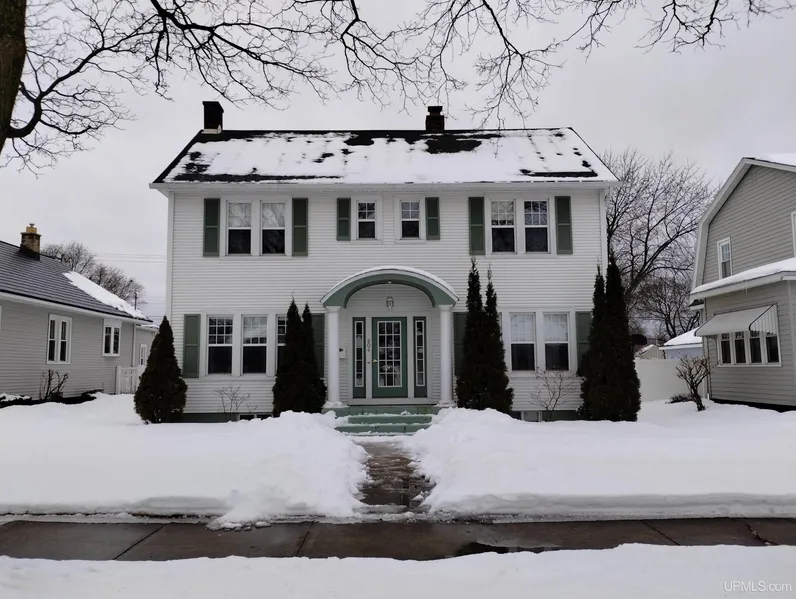 Charm abounds in this grand dame colonial built in 1924! This home boasts a formal entry with a beautiful staircase and arched doorways that lead to the living room with its brick fireplace and to the formal dining room with 2 corner built in china cabinets. Continue thru the swinging door to the kitchen with its tile backsplash and a charming booth which is perfect for your breakfast, lunch or even doing homework. The den is large and has rich, brown wood walls. There are hardwood floors with some Birdseye maple, and it is believed to be under the carpeting in the bedrooms. All bedrooms have walk in closets and 2 in the primary bedroom. Full bath upstairs with original tile and a huge linen closet in hallway. There is even a walk-up attic that could be finished off or is great just for storage. The basement has an L shaped family room plus a 13x11 room that has a pass thru window to the...
