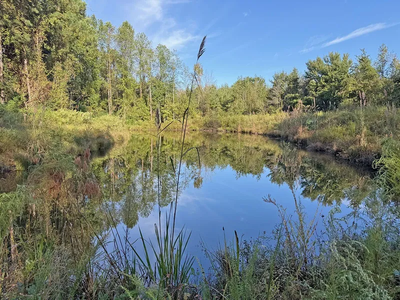 Hunting land with 900 sf 2-bed cabin with 16' vaulted ceiling. All new appliances and furniture never used, including propane 5-burner stove, new cabinet microwave, point of use water heater, well with water purification system, carved granite shower, organic stone kitchen island, triple pane windows, all energy efficient, with 2 single-use steel shipping container shops and a large wooden tractor shed. The land has 5 deer stands with feeders. Extensive all-weather road/trail system very well maintained. Stocked 2-acre pond. about a mile of frontage on famous Mill Creek. Mostly mature, merchantable hardwood/pine balance cypress_tupelo along the creek.