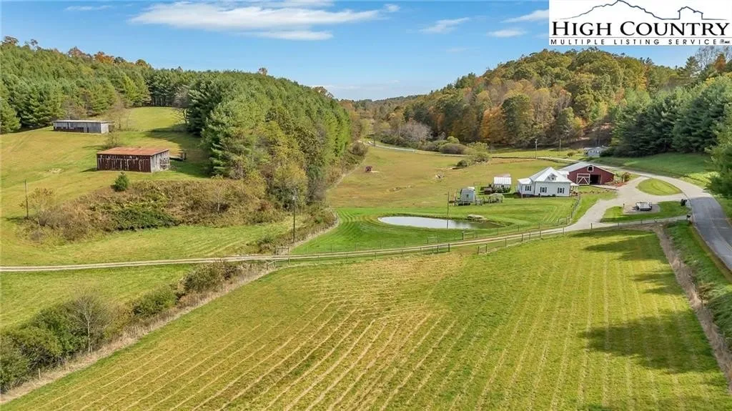 Step back in time and enjoy the simple pleasures of country living! This 1922 farmhouse sits on 50 beautiful acres of fenced land with a mix of open pasture and peaceful woods — the kind of place where you can breathe deep, stretch out, and watch the seasons change. About 11.5 acres of pasture are ready for your horses, cows, or goats, with a stream meandering through the bottom. The remaining 38.5 acres are wooded, full of wildlife like deer, turkey, and the occasional bear. There are marketable hardwoods and white pines, plus a network of old hiking and 4-wheeler trails that wind through the trees. The property has four old barns (great for hay or equipment storage), an old chicken coop, and a newer 4-stall horse barn that’s the heart of the place. One side of the barn features four roomy stalls and a separate tack room, while the other side offers 716 sq. ft. of finished rustic-style space complete with a bar area — perfect for hosting friends or setting up a cozy game room. Upstairs, you’ll find another 612 sq. ft. that could make a great bunk space, home office, or creative studio. Step right outside to a fire pit area, ready for evenings under the stars. A small pond, stocked with bass, catfish, and bluegill, adds to the charm and provides a quiet spot to relax. The farmhouse is cozy and full of character, offering plenty of space without losing its old-fashioned feel. The main level includes a comfortable living area, open kitchen and dining, full bath, primary bedroom, and laundry. Upstairs are two more bedrooms and abundant storage space. A wrap-around porch on two sides invites you to sit a while and listen to the quiet — maybe with a cup of coffee in the morning or a glass of sweet tea at sunset. There’s also a spring house with running water, a reminder of how folks used to live when life was simpler and slower, and a 550-gallon underground storage tank with pump to help ensure you’ll never run short — a real bonus for peaceful country living. You’ll feel miles away from it all, yet you’re only 15 miles from Sparta, 16 miles from Jefferson, and 42 miles from Boone. If you enjoy kayaking and/or fishing, public access to the New River is just 2.5 miles away at New River State Park – Kings Creek Access. For expanded hiking and horseback riding, Grayson Highlands State Park is only 22 miles away and offers some of the most beautiful mountain trails around. Whether you’re dreaming of raising animals, gardening, riding horses, or just soaking in the peace and quiet of country living, this property feels like home the moment you arrive. (Seller is the listing agent’s nephew by marriage.)