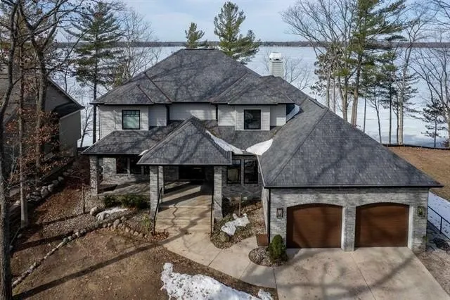 Stunning Green Lake waterfront. This exquisite lakefront property, meticulously renovated between 2022-2024, offers breathtaking sunset views and 75' of private sandy beach perfect for summer enjoyment. The expansive outdoor space features multiple entertainment areas, ideal for hosting gatherings while enjoying the waterfront ambiance. The interior showcases a complete top-to-bottom remodel with showroom-quality finishes throughout, featuring an elegant neutral color scheme that creates a sophisticated, modern atmosphere. The heart of the home is a chef's dream kitchen, boasting a stunning island crowned with premium quartz countertops and matching backsplash, complemented by high-end Thermador appliances. Nearly every room captures magnificent water views, creating a seamless indoor-outdoor living experience. The luxurious primary suite features a spacious walk-in closet, private sitting area with balcony access, and a spa-like en suite bathroom complete with a deep soaking tub and indulgent steam shower. The fully finished walkout lower level serves as an ideal in-law suite, equipped with its own laundry facilities, kitchenette, and private entrance. Located in the highly sought after Penn Lock Colony neighborhood, the home offers easy access to the renowned Interlochen Center for the Arts just across the lake, the charming Village of Interlochen, Crystal Mountain Resort, and is just a short drive from vibrant downtown Traverse City. Click on virtual tour link for an incredibly realistic view of the interior