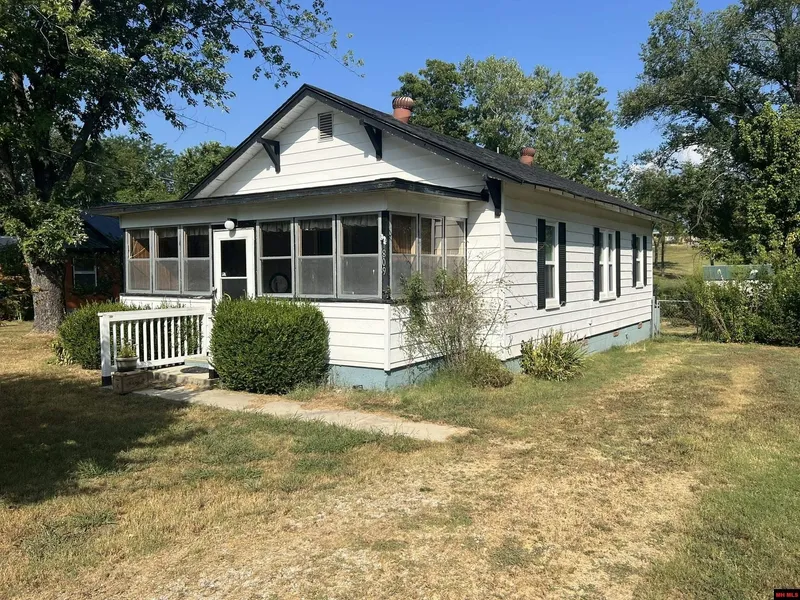 Cozy 2 bedroom, 1 bath Cottage. Open living area where the kitchen has a snack bar and includes the includes electric range and dishwasher. Dimensional shingles replaced circa 2022, double pane windows and steel siding. Central HVAC is heat pump with ventless gas heater for back up. Laminate flooring except for the bath and utility rooms which have vinyl, walk-in shower. Enclosed front porch/sunroom. Nice yard with mature trees and shrubs and chain link fenced back yard for children or pets. Close to schools and shopping.