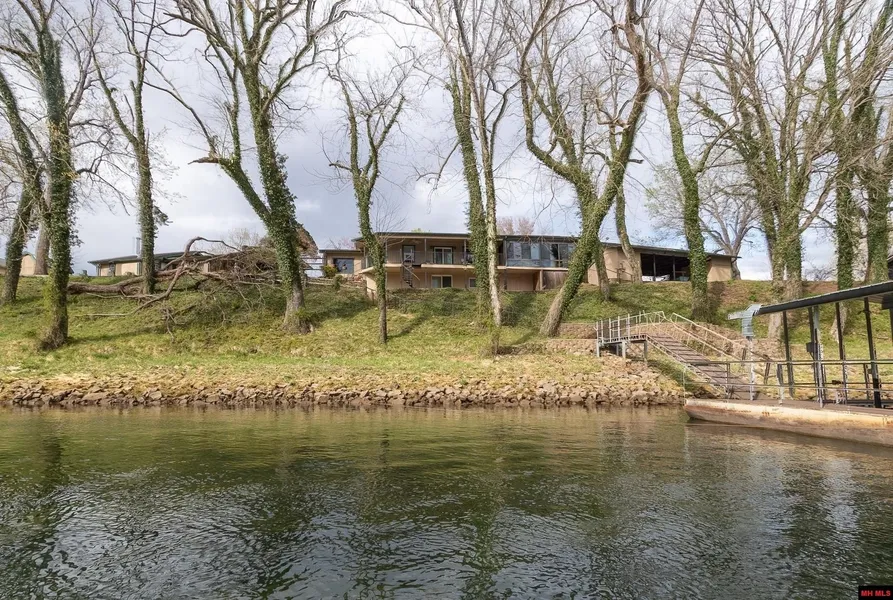 Located in the stunning Arkansas Ozarks on the White River, this property is a dream for pilots and fishermen alike. The 2,428 sq ft home boasts 3 bedrooms, 2 full baths, and sits on 1.44 acres m/l across lots 7, 8, and 9, plus an additional parcel for airstrip access. Store your toys in the 2-car garage/workshop with a 2-slip boat dock. Enjoy 350 feet of river frontage and over 1,000 sq ft of hangar space for your plane. Entertain or relax on the 377 sq ft composite/steel deck off the dining room, or the 330 sq ft patio off the primary bedroom. A covered patio connects the home to the oversized detached garage. Parcel #'s 002-09122-000 & 002-10378-000 Offered at $1,250,000.