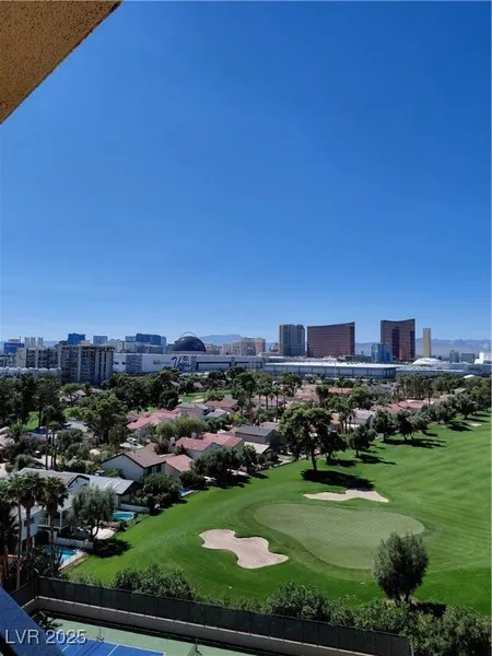 AWESOME CITY & GOLF COURSE VIEWS!! FULLY Furnished. really the views are great from 11th Floor of Regency Towers, views from every room! Spacious 2 Bdrm & 2 Bth. Full Length balcony. Granite Counters in Kitchen, Nice Bar area off Living Room for entertaining. Residents enjoy Pool, Tennis, Pickleball and Concierge services, guard gated community. FULLY Furnished. Located just off the strip - in the vintage / historical Las Vegas Country Club Estates. Minutes from the Strip, Raider's Stadium, T-Mobile, Wynn Hotel and all types of entertainment & shopping.