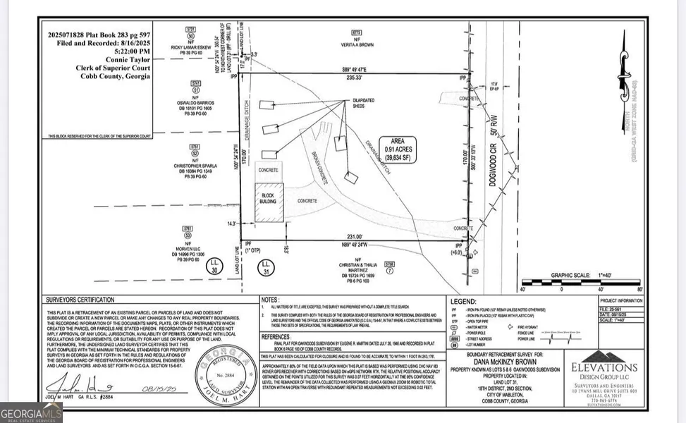 An opportunity for nearly a full acre on Cobb County awaits! This .91 acre lot sits adjacent to some newer construction homes with some new bulbs being developed across from it. This lot features a large, concert block garage with two large bay doors, driveway access from the road, large hardwood trees, and quick and easy access to I-20, 278, 78, Austell, and Mableton. Power and water are easily available at the road frontage making this a perfect lot to build a home, or develop and sell for a profit. A survey has been completed and filed with the county and available upon request. Currently zoned R3. For exact location, search 5758 Dogwood Cir, and the wooded lot to the right is the property for sale.