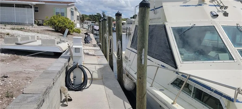 Discover this gulf access and amenity rich community of Spring Creek Village where you own the land! This canal lot has a Marine Power Station /Ship to Shore Tower at the dock with dual 30 AMP electrical service and water. Well maintained seawall, cap & newer wrapped pilings. Build your Dream Home whether a "Custom built home," a modular or manufactured home the choice is yours! Estero Bay is 6 min by boat from the property with fishing, beaches, shelling, watching dolphins play & water front restaurants. The Gulf is 15 min by boat via New Pass at Lovers Key Beach where boats gather in the Pass for the day, picnics, barbeques, swimming, shelling & enjoying sunsets. The amenities include a Clubhouse with planned activities & busy social calendar. The community features a private boat ramp, boat storage compound, pool, spa/hot tub, bocce, shuffle board, tennis, pickleball, basketball, l...