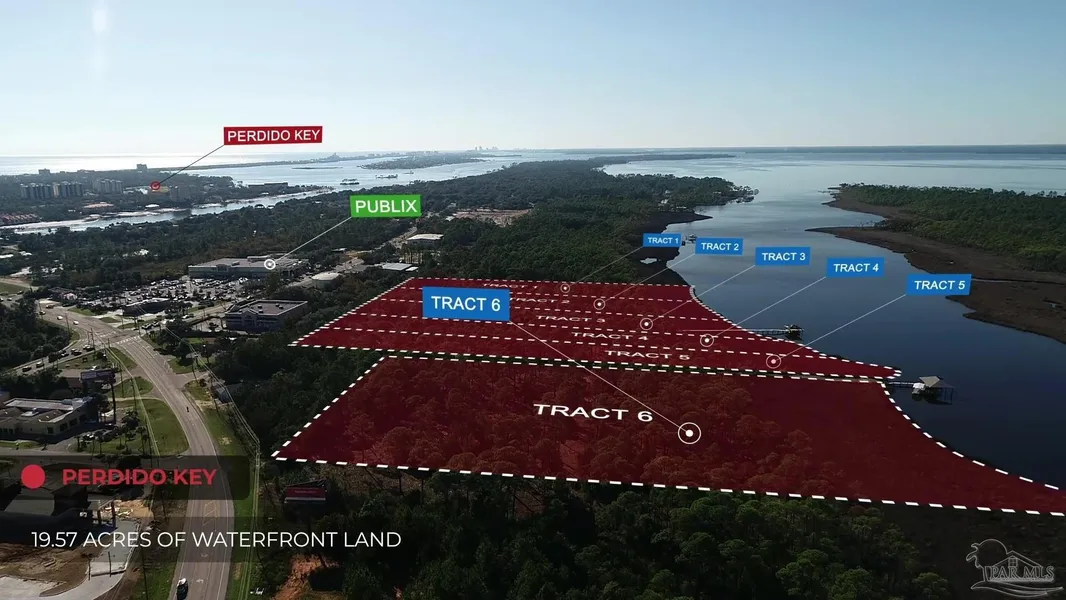 We are pleased to offer this exclusive waterfront residential land opportunity in Pensacola, FL. Located on the beautiful Bayou Garcon, the property features over 1,378 feet of unobstructed views and plenty of privacy. The property is located in one of the most sought-after beach communities of Pensacola, FL, Innerarity Heights and Perdido Key. The property consists of multiple parcels for a total of +/-19.57-acres. The seller is selling the site as a compilation of 6 total waterfront tracts, which are to be subdivided at closing. Tracts 1-5 are approximately +/-2.2-acre tracts. Tract 6 is approximately +/-8-acres and will be available for purchase after Tracts 1-5 have sold. Tracts 1-5 feature expansive views on the Bayou Garcon with approximately 133ft - 173ft of water frontage and deep water access. The tracts are roughly 220’ wide and 683-953’ deep. The property will not have an HOA...