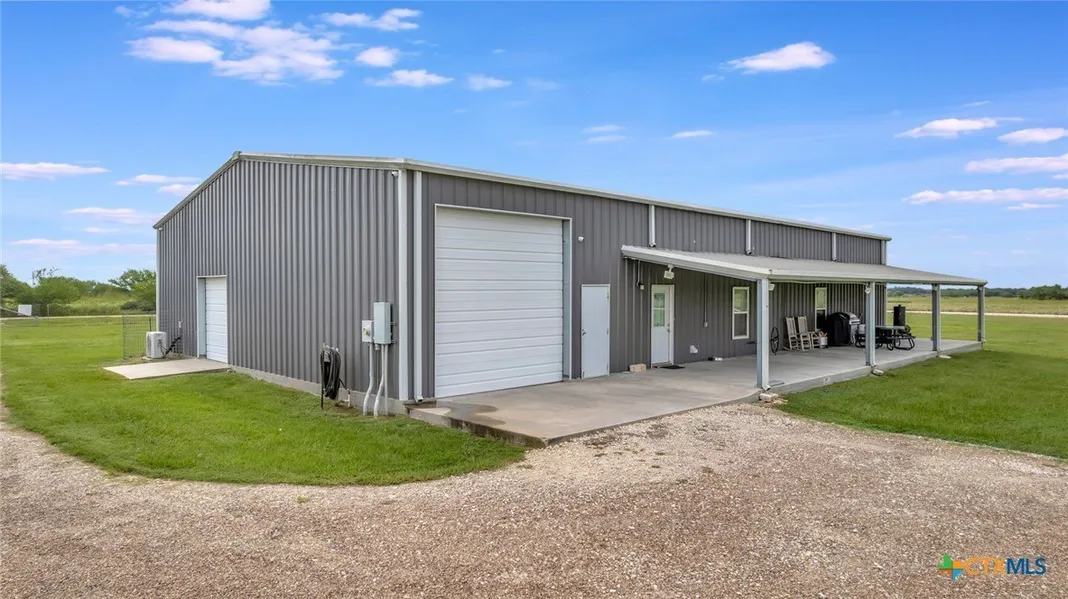 Welcome to this versatile barndominium property offering comfort, space, and wide-open views. The exterior features a durable metal structure with a large covered patio—perfect for relaxing outdoors, entertaining, or simply enjoying the peace and quiet of the countryside.