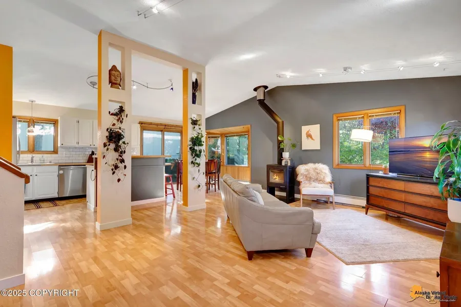 Perfectly situated just minutes from Kincaid Park on a large corner lot, this home offers a flexible multi-use floor plan—ideal for multigenerational living or creating a rental income opportunity. Blending warm wood accents with modern updates, the home features brand-new carpet, fresh paint, vaulted ceilings, and a cozy wood stove. The MIL has been completely renovated, and the oversized 2-car garage provides ample space for vehicles, storage, or hobbies. A brand-new septic system and a young heating system ensure peace of mind for years to come. Whether you're looking for a home that grows with your family or one that offers supplemental income potential, this property is a rare find in a sought-after location.