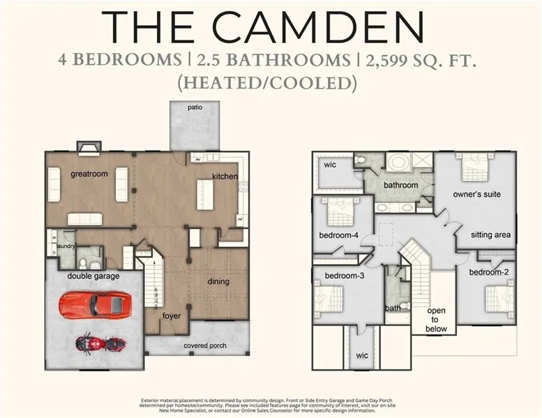 Discover Heartland Havens in beautiful Fort Mitchell, Alabama, a vibrant new Hughston Homes community that offers peaceful surroundings and a true sense of home. Enjoy modern comfort in a setting designed for relaxation, connection, and everyday convenience. Welcome to our Camden A Floorplan, featuring 2,599 sq. ft. of stylish living space with 4 bedrooms and 2.5 baths. Step into the inviting foyer with soaring two-story ceilings and a formal dining room showcasing a coffered ceiling and elegant trim details. The spacious great room centers around a cozy wood-burning fireplace, creating a perfect spot for gatherings and quiet evenings alike. The chef’s kitchen impresses with granite countertops, beautifully tiled backsplash, and stainless-steel appliances, including an electric range. A large center island with seating overlooks the breakfast area, ideal for casual dining or entertaining. The walk-in pantry (or optional butler’s pantry) provides abundant storage for every culinary need. Convenience meets organization with the Signature Drop Zone, complete with built-in cubbies, while the laundry room and half bath are tucked neatly on the main level. Upstairs, retreat to your expansive owner’s suite with a sitting area and a luxurious bath featuring a garden tub, separate shower, dual vanities, and a large walk-in closet. Three additional bedrooms offer generous space and natural light, along with a full bath nearby. Enjoy luxury vinyl plank flooring, a two-car garage, and our Signature Gameday Patio, featuring a wood-burning fireplace, ceiling fan, and outdoor speakers, perfect for relaxing or entertaining outdoors. 2-car side entry garage. Elevate your lifestyle with included home automation, and experience the warmth of community living in Heartland Havens, where every day feels like home.