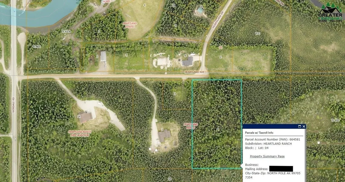 Beautifully wooded 5-acre parcel in a great subdivision with some newer homes. You'll find easy access to the Chena River at the Nordale boat launch just a few minutes away. Power is close by and Heartland Avenue offers direct access to the North end of the property. Build your dream home on this private, yet accessible property.