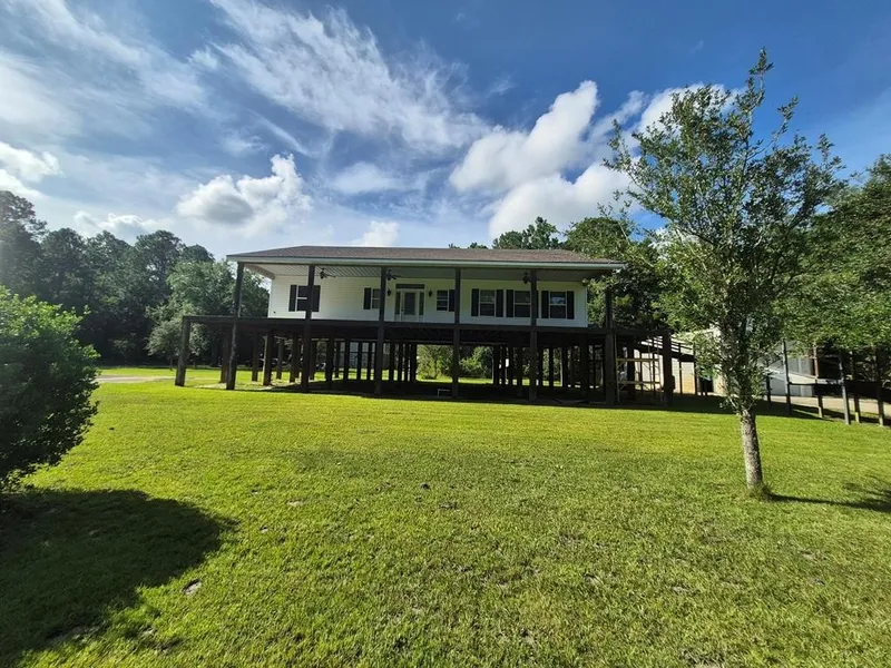 Elevated Fixer-Upper with Major Potential!! This home features 3 Bedrooms, 2 bathrooms, and an expandable second story. Nestled on a spacious lot surrounded by trees, this elevated home is packed with potential and just waiting for your personal touch. The home sits high on sturdy pilings and features a deep front porch ideal for relaxing and enjoying the peaceful surroundings. Inside, the property needs some work and was never fully completed, offering a blank canvas to finish to your taste. The open-concept layout provides flexibility, and the stairs leading to a potential second story give you the option to expand for more living space, a game room, or a private master suite. With a solid structure and unique elevation, this property is perfect for a buyer or investor looking to build sweat equity or create their dream home in a quiet, country-style setting.