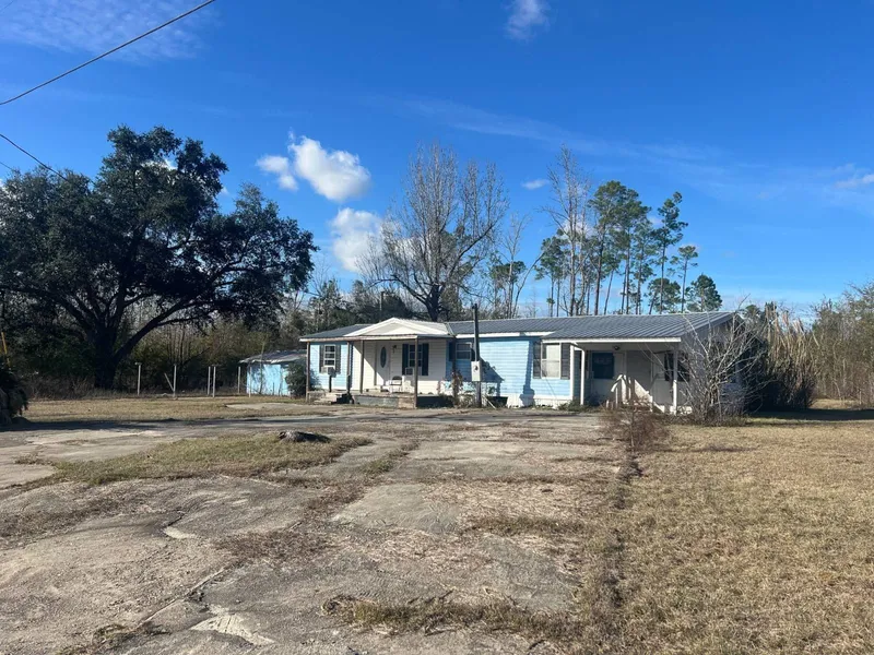 Perfect for a renovation or flip! This 3 bedroom 2 bath double-wide mobile home has a good floorplan and a metal roof that appears to be in good-condition. Great location not too far out of town and across from Blountstown High School located down a quiet dead-end street. There is a large addition with a carport attached as well for more space. Block detached building that appears to be wired and plumbed for a possible additional living area. Shed and a small pole barn also located on property. Bring your vision and make it your own!