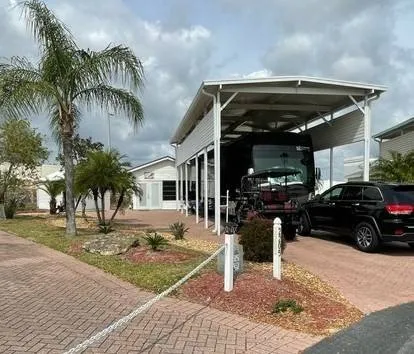Price reduction on this fantastic location for a home base or season. Located in the luxury Class A Motorhome Regal Pointe section of Deer Creek RV & Golf Resort, this North/South (approx. 1/4 acre) corner lot features brick pavers, large port, 50 amp RV hookup service, water and sewer, separate irrigation from a new well (which is huge benefit) and a carriage house along with a shed. Back of property is sodded and lends itself to a great place for your fur baby to play in the grass. Utility shed has a washer/dryer, refrigerator 1/2 bath and plenty of shelving for storage. There are two outdoor storage cabinets at the back of the utility shed. The Carriage House has been renovated with new floor joists and flooring to compliment this great space. Carriage House boasts a bar with seating, pull-out sleeper sofa, ceiling fan, A/C and tons of personality to make it an ideal hang-out or...