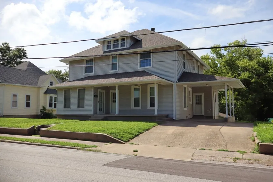 Check out this home and all it offers! This large home has a living room, kitchen, dining room/area, 2 bedrooms, 1 bathroom, and a laundry room/area on each level, with an additional 3/4 bathroom on the main level. The home has some very unique features, including a custom-tray ceiling in the living room, and custom built-ins are located throughout the home including in the hallway, kitchen, laundry room, and primary bedroom on the main level. Major appliances are included for both kitchens. The upstairs has two larger bedrooms and a private entrance on the front and a deck in the rear. The main level has two smaller bedrooms and an enclosed sunroom with a custom design on the floor and ceiling. There's a basement for storage and houses the mechanical room. A separate lot in the backyard is a 2-car garage, with its own 200-amp outlet and a separate entry to a workshop which has heat and ...