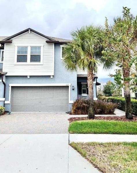 Welcome home to this spacious move-in ready Florida resort style 3 bedrooms, 2 full baths, 1 half bath, 2 car garage, end unit with a WATER view townhouse nested in the sought out community of Connerton in the heart of Land O' Lakes. Walk through the brick paved driveway up to the side entrance into an OPEN FLOORPLAN featuring ceramic tile flooring throughout the first floor, dual-pane windows, and kitchen overlooking the spacious living and dining combo. Private powder room across the hall with vanity and window. Kitchen features granite countertops, 36" inch cabinets, stainless steel appliances, walk-in pantry, along with an extended island with enough space for bar stools perfect for additional seating when gathering. All bedrooms are upstairs. Upstairs opens up to a spacious LOFT with bedrooms nested on both sides. Owners retreat offers expanded walk-in closet, en suite master bath w...