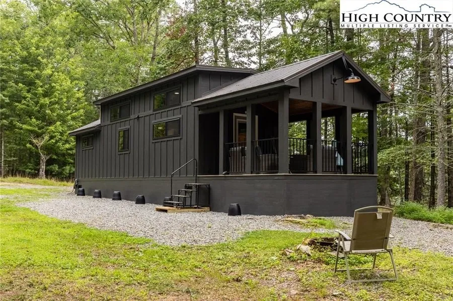 Luxury Wilderness Model Home on 2.984 Acres just 8 minutes to the New River State Park access! Whether you are seeking a full-time residence or vacation rental investment, this property provides modern comfort in a picturesque mountain setting. This brand-new park model home features durable LP Board and Batten Smart Siding, low-maintenance Trex decking, energy-efficient Rock Wool insulation, modern light fixtures/fans, and a metal roof with a 20 year warranty. Inside, you will find stylish LVP flooring, soft-close wood cabinetry, stainless steel appliances including a gas 2-burner cooktop, a farmhouse kitchen sink with an LED light faucet, a stackable washer and dryer, and a convenient tankless instant hot water heater. The thoughtful layout includes a loft space for extra sleeping or storage, and the home is move-in ready with all furniture conveying including the outdoor patio set, ge...