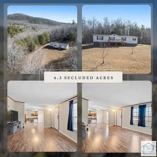 Make your home tucked away on 4.3 private acres in Patrick Springs. This 2002 doublewide on a permanent foundation offers peaceful country living wiht room to breathe. The 3 bedroom, 2 bath home features a new roof, new vinyl flooring in the lving room and laundry area, new front and rear decks - ideal for relaxing and enjoying the quiet surroundings, The HVAC system is approximately 5 years od. In the front yard, you will find two peach trees and a plum tree, adding to the property's rustic charm. Don't miss this opportunity if you are seeking privacy space, and a slower pace of life and schedule your showing today! All information taken/provided from tax card/GIS/seller. Purchaser/Purchaser's Agent to verify all information.