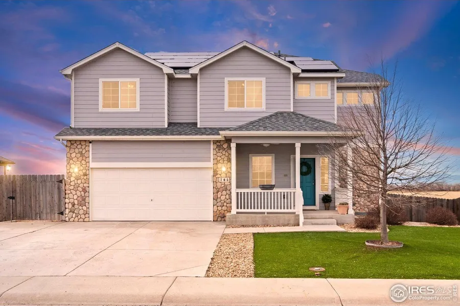 Truly the BEST home in the neighborhood! Views of the Front Range are breathtaking and the additions, inclusions and upgrades are unmatched! Upon entering through the front door you are immediately captured by the unobstructed view of the Twin Peaks! Continue the adventure on the gigantic 60' back deck as you view open farmland and the South Platte River basin! Main floor living is spacious with abundant natural light and large views! Primary suite is on the second level and positioned, once again, with incredible views of the Front Range! All bedrooms and laundry are thoughtfully grouped together. The property is an entertaining dream or your own relaxing oasis! The yard has been designed to be maintenance-free with artificial turf grass and a massive flagstone retreat! Enjoy the hot tub or fire pit with easy access from the walk-out basement! Additional parking was created next to the garage and behind the fence with two 30-amp receptacles for trailer, camper, boat RV or food truck storage! The three-car garage has additional storage spaces with shelving and workbench included! This home is an incredible value with a new roof, new exterior paint and newer floorings! In addition, the 37 solar panels are owned, include the 25-year transferrable warranty and provide almost a net-zero electric bill! Location, Location, Location... if you know, you know, so don't miss it! See the Documents for all of the upgrades and inclusions.