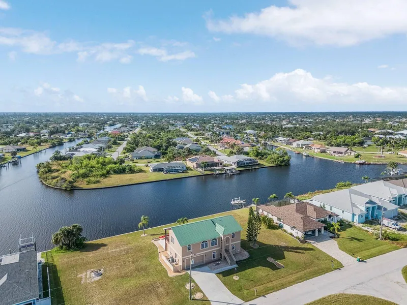 This CUSTOM RESORT STYLE HOME, has spectacle views and is user-friendly all year round inside and out. The upper level ENORMOUS windows provide you with 360° views insuring your views will never be blocked in the future. (No ranch style small windows here!) The vantage point on the second story will provide a unique outlook on life to the point as soon as you wake up you'll be smiling knowing no matter where you are in the home you'll have some nice scenery out your windows. The 8 person octagon spa flows over into your real size 14'x28' pool suitable for laps. Then after your workout just relax in the SIMPLY AMAZING 115 jet therapeutic luxury spa . In your backyard is an extra EXTRA wide intersecting waterway that has 88 feet of seawall assuring room to park your boat or have your own fishing spot. Leave in your boat and go east or west on your way to the Gulf of Mexico and you won't have to come back the same way. (Sorry no skinny dead end garbage collecting smelly water here) !!!!!!!! The depth of the water is controlled by a lock So the depth remains constant, allowing you to get your boat in and out at anytime !!!!!!! The yard has room for parking a trailer, rv or even a volleyball court. Ginormous? Heck YA,,,,Open up your 33 feet of pocketing sliders to give you an OPEN concept 1730 sq ft upper level. This unique style home allows for separate living areas if so desired. Live upstairs and rent downstairs or possibly an Airbnb or snowbird rental. The lower level scullery is ready for a kitchenette in case you desire separate living spaces. No Florida home is complete without the VERY MOST IMPORTANT FEATURE southern exposure!! You will be assured a user-friendly exterior environment whether in the penthouse or on the lower level. Outdoor activities are possible all year round and you will not be trapped inside behind your shades all day long. The upper outdoor area/ office provides a unique perspective on life while watching the boats navigate through the waters. (No wasted space walls here!!) The year round user-friendly southern exposure second level outdoor living area provides cool breezes in the summer and warmth in the winter. There are 55 miles of canals in your neighborhood just steps out your back door to explore in your kayak. Your choice, You may find yourself coming to Florida to explore but you may soon realize that your home has everything and you really don't need to go anywhere else. This custom style home is for those few individuals that can appreciate the finer things in life and take their own path. All updates now Included.