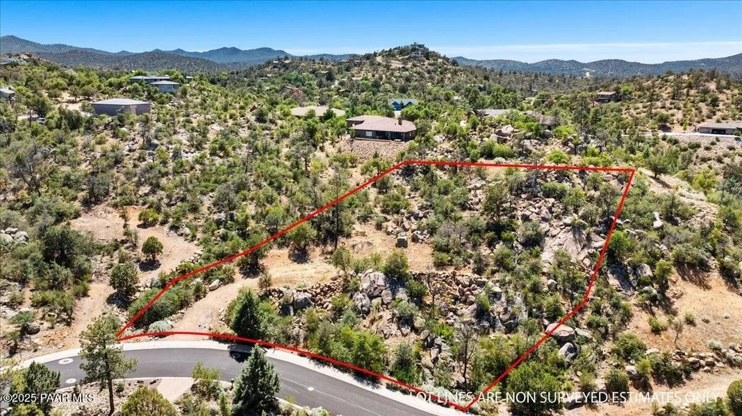 An incredible opportunity to build your dream home in a prime location. This homesite offers unmatched panoramic views and natural landscaping, all while being ideal for a single-level build. The sellers have already prepared conceptual plans (see attachments) and even have a builder ready to bring the vision to life. The current design includes a 2,535 sq ft home with a 3-car garage and generous covered patios in the front and back, perfect for taking in the surrounding views and enjoying the peaceful privacy. Located in The North Forty, a custom home community known for its unique homesites, paved roads, city utilities, and stunning vistas all just minutes from Downtown Prescott.
