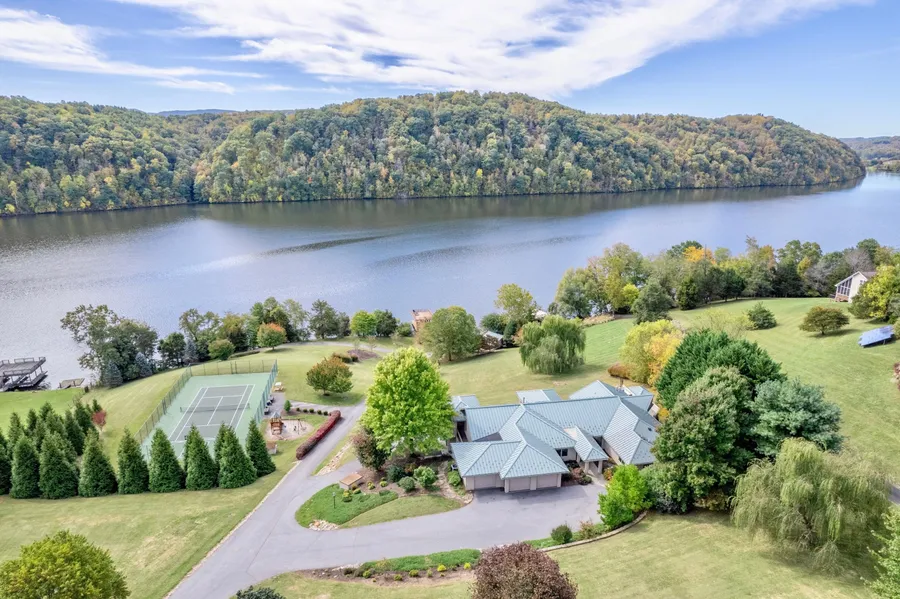 You must see this one of a kind contemporary lakefront property! This stunning home on Claytor Lake is situated on 2 lots with over 4 acres, 2 covered docks, a tennis court and boat house with a full bath perfect of entertaining. This home is the peak of luxury with every amenity imaginable, completely rebuilt with renowned architect Dr. Warren Kark in 2009. Breathtaking lake views from every window. Extensive outdoor living space including a hot tub, waterfall water feature, outdoor kitchen and built-in fire pit. The entry level has an open floor plan, with the family room, dining area, sitting area and wet bar. The kitchen has all high end appliances, custom cabinets, vaulted ceiling, and skylights that bring in lots of natural light.