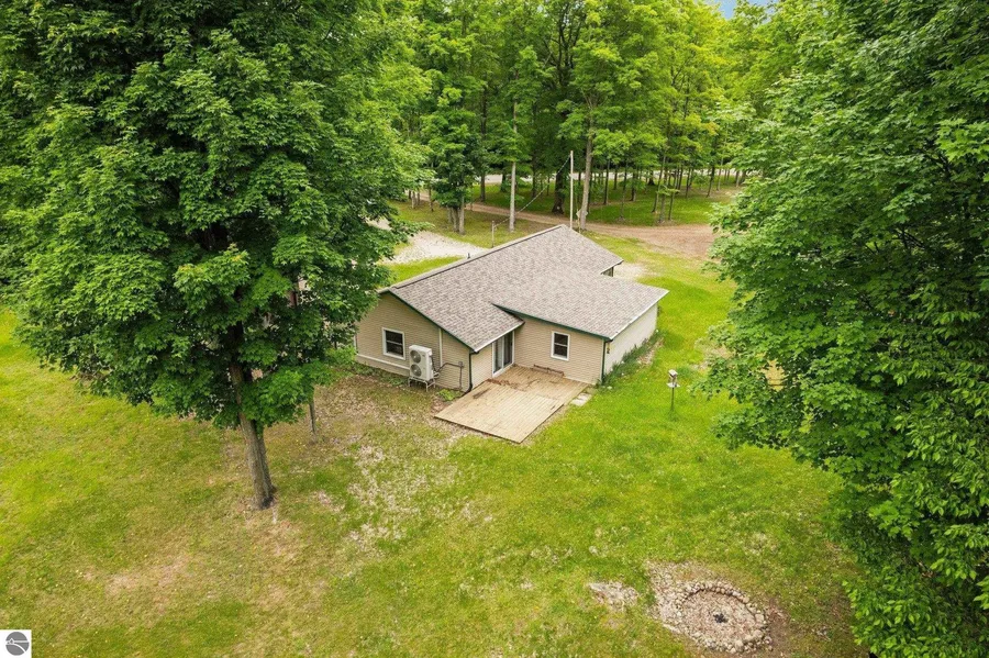Tucked away on 10 acres of pristine woodland, this updated 3 bed/2 bath ranch is the perfect blend of comfort and nature. A private trail winds through the property, leading directly to the Manistee River, while thousands of acres of adjacent state land offer endless opportunities for outdoor adventure. Additionally, modern updates including a new roof, new flooring, and new kitchen appliances make the space move-in ready, with an easy-living layout. Also outside, you'll enjoy an exceptional setting that features a large, electric-fence protected orchard and garden, as well as a detached garage/outbuilding with ample storage space. Whether you’re seeking a year-round retreat or a weekend getaway, this property delivers both privacy and access to Northern Michigan’s best natural amenities.