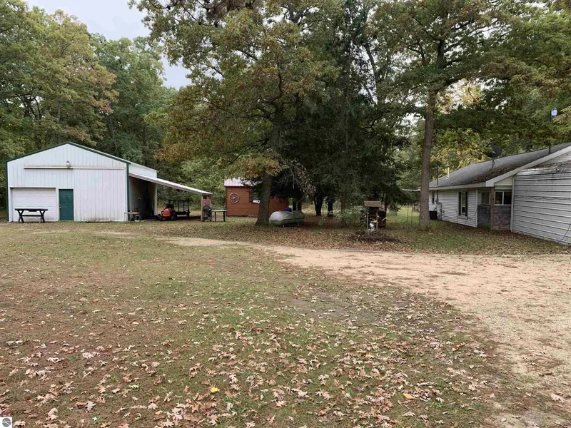 Bring your fishing rods and all other recreational toys to this 3 bedroom, 1 bath home just outside Wellston. The property is a nice level 1+ acre lot on a county maintained paved road close to Tippy Dam, many other rivers, lakes and recreational trails. The home features an open concept kitchen, dining and living room, ceramic tile floors, central air and camper hook-up in the yard. A large utility room holds the mechanicals including newer washer and dryer. The free standing aluminum car port gives protection from Michigan weather. A very large desirable 24x32 pole barn with attached open lean-to has electric and tall ceilings for all storage needs. The level and wooded back yard has an aluminum free standing covered structure (10x12) for gatherings along with a "tiny house" that could be set up for additional guests. And for your convenience the owner installed a new septic system in 2019. Come on up and make this your Up North getaway cabin.