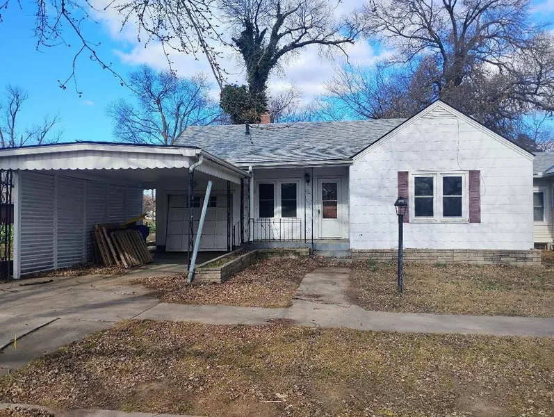 Additional photos including interior will be added on 01/15/2026. This inviting 2-bedroom home, with the option for a third, offers great versatility. It includes two main bedrooms and a full bath, plus a third room with a closet that could work as an extra bedroom, den, or office. This space also leads to the backyard and garage. The cozy eat-in kitchen features a gas range. The home is equipped with central heat and air through a split system, roof approximately 10 years old and updated vinyl windows. Hardwood floors in one bedroom and carpet in living and 2nd bedroom, seller believes there is hardwood under carpet as well. Attached garage with a carport, a partial basement accessible from the garage, and extra backyard storage building make it even more convenient, all in a quiet, well-established neighborhood.