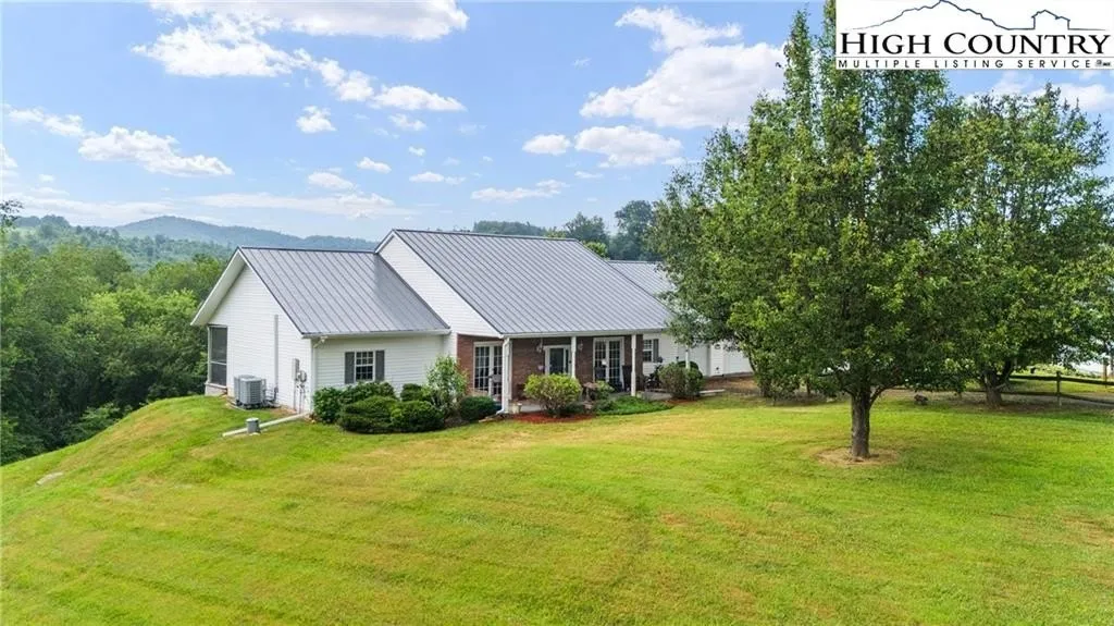 Under the recently installed metal roof, this beautifully designed and fully furnished home offers a warm, inviting atmosphere and a thoughtfully planned layout that welcomes you the moment you step inside. The home features a spacious kitchen with ample cabinet and counter space, well-suited for cooking and entertaining. A spacious living area with a cozy gas log fireplace along with four spacious bedrooms and three full bathrooms, the home is arranged in a split-bedroom design with two bedrooms on each side—fitting for ensuring privacy and comfort for both family and guests. The primary suite serves as a serene retreat, complete with an intimate ensuite bath that includes a jetted soaking tub and a separate walk-in shower. Step outside to enjoy the expansive deck and peaceful backyard—just right for relaxing after a day spent exploring the nearby New River or hiking local trails. The two-story barn-style outbuilding is equipped with a dedicated HVAC heat pump and electricity on a separate meter, offering versatile potential for use as a recreation or entertainment space, guest accommodations, artist studio, or more. Water and sewer piping are already installed inside the structure, allowing for future connection by the buyer if desired. The home also features a two-car attached garage, convenient one-level living, and a range of modern amenities including central vacuum, security cameras, and fiber optic high-speed internet. For added convenience, each side of the home is equipped with its own hot water heater. Tucked away at the end of a quiet cul-de-sac, this property offers a blend of seclusion and accessibility. Located just a short drive from the charming towns of West Jefferson and Jefferson.