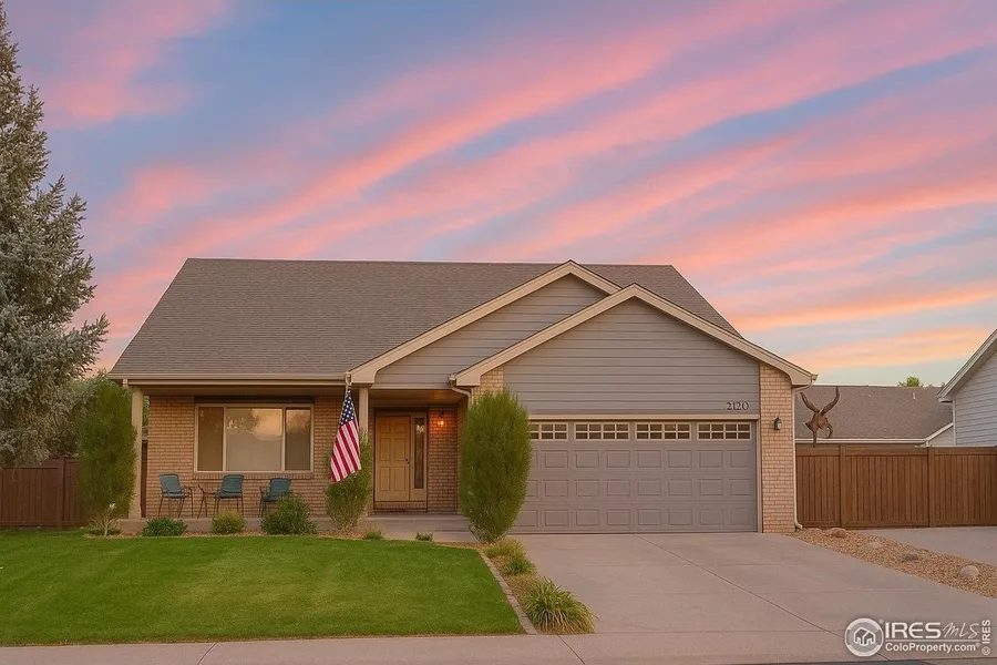Fall in love with this beautiful ranch-style home with finished basement in Greeley's desirable Homestead Heights / Eagle Ridge neighborhood. Open and light-filled layout with vaulted ceilings, built-in shelving, and elegant finishes throughout. Gourmet kitchen features modern appliances, pantry, ample cabinetry, and dining area with patio access. Main-level primary suite includes walk-in closet and spa-like bathroom. Finished basement offers rec area, a spacious theater room (projector, screen, and red light fixtures included), and guest suite with bathroom and two bedrooms. Enjoy a landscaped, fenced yard complete with a hot tub area with privacy curtains. Enclosed RV/boat parking on house's southern side. Neighborhood amenities include pool, parks, and tennis courts. Conveniently located near Westlake shopping center, St. Michael's Square, and UCHealth.