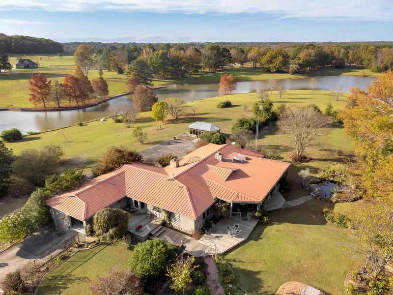 This is the Alabama estate you have been dreaming of owning! The main home offers 4,500 square feet of custom luxury living featuring 4 spacious bedrooms, 3.5 bathrooms, a beautiful kitchen, vaulted ceilings in the living room, the primary suite opens to the covered back deck that stretches across the home. A gorgeous 11 acre pond wraps around the home leading to a large barn with stables, tack room, corral, rec room, bathroom, and 4 bays! Other notable features include a pool house, greenhouse, detached garage with workshop, large tree house sitting over the creek, breathtaking nature views from everywhere. This property includes 40+/- acres. Buyer will have option of first refusal on adjoining property with guest house, 5 acre pond on 50+/- acres. Must be pre-approved to schedule a showing. All information to be verified by purchaser.