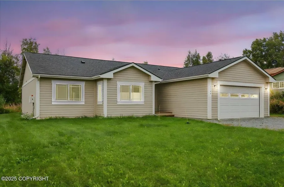 Large and private home in the heart of Wasilla. Public water and sewer for your peace of mind. The large two-car garage has enough room to fit most 1500-series trucks, as well as a mechanical/storage room. The primary bedroom is separate from the other bedrooms for privacy, and a large kitchen with ample counter space awaits you! Close to the highway and commerce make this house very convenient! Built in 2016 by DSZ Construction, LLC, this 5-Star Energy Rated home combines quality with efficiency. Interior finishes include granite countertops, maple cabinetry, and durable laminate flooring. Vaulted ceilings enhance the open living area, while the fireplace adds warmth and charm. The spa-style primary bath features a six-foot jetted tub and upgraded fixtures. Step outside to a 20×12 deck designed for year-round enjoyment. The house is conveniently located within walking distance of commercial areas, restaurants, and trails, making it convenient to enjoy an active lifestyle.